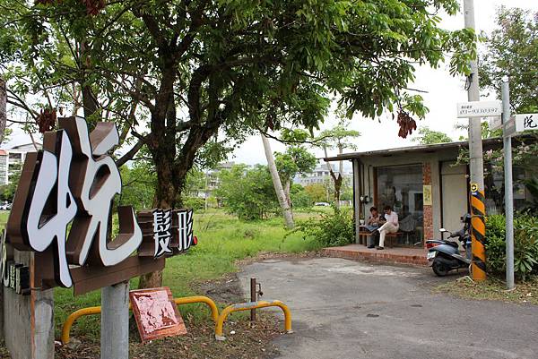 ▼幾米公園對面有家造型特別的髮廊,看我那兩位可愛同事坐在髮廊門口,不是等