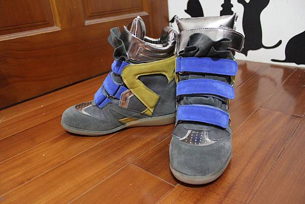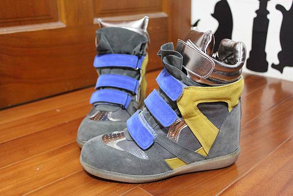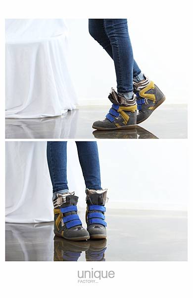 ▼將將,這是我的第二雙魔鬼氈增高休閒鞋~灰色藍黃系列~