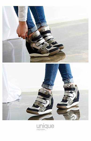 ▼將將,這就是我的第一雙魔鬼氈增高休閒鞋~金色迷彩系列~