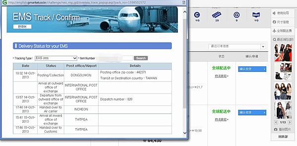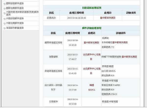 ▼通常上飛機的第三天,我會查商品號碼,然後去中華郵政國際快捷查詢,