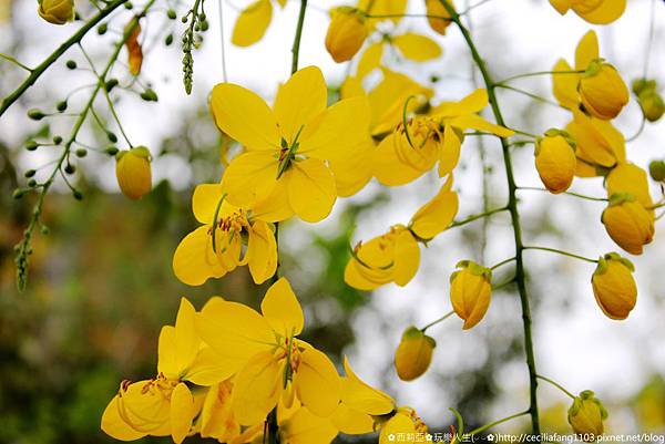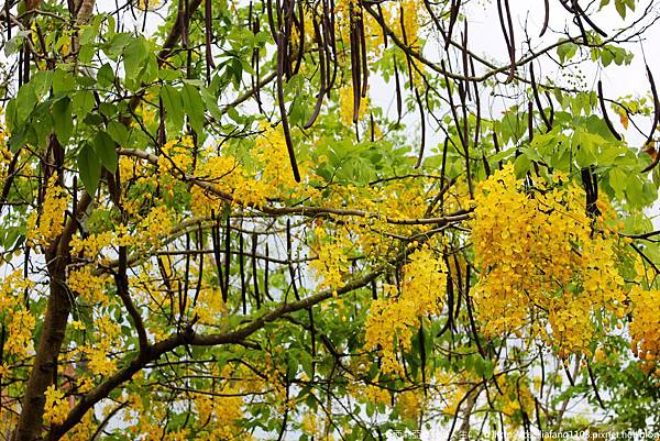 而之後也從網路上得知,原來花朵有著黃金色般的樹木就是有「黃金雨」之稱的阿勃勒,