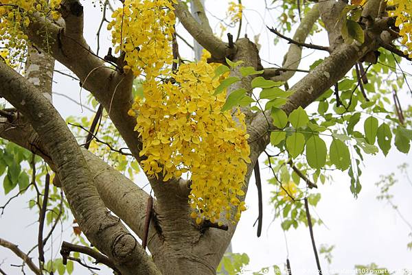 (每逢初夏開始,阿勃勒樹枝上長滿金黃色花朵,隨風搖曳,瓣落如雨下,而這.............