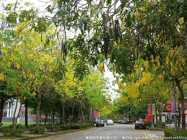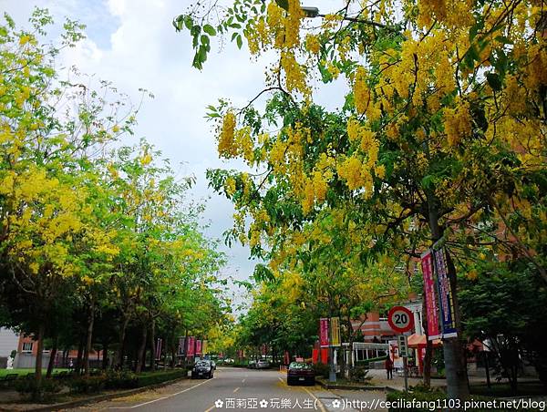 ▼就在荷花池一旁,道路兩旁種植著超大面積,就是我那朝思暮想的阿勃勒樹,哇~~~