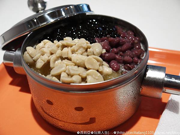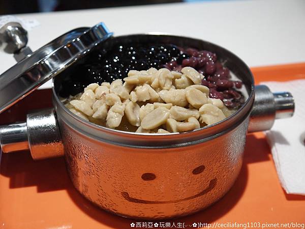 ▼當我把頭頂上的蓋子掀開來,吼唷~~花生、珍珠還有紅豆佈滿了整個.....鐵人的頭部