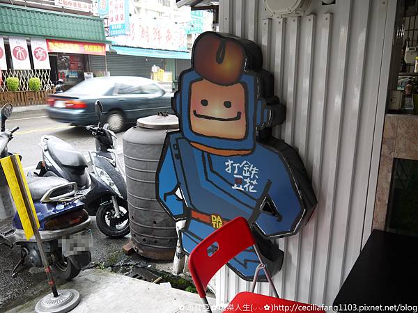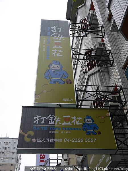 ▼還沒走進店裡,就可以看到騎樓柱子上有著打鐵豆花Logo:鐵人先生XD