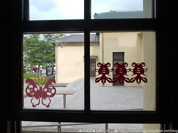 ▼主建築裡有著一間小小閱讀空間,有趣的是,每扇窗戶玻璃上都貼著充滿喜氣的各式
