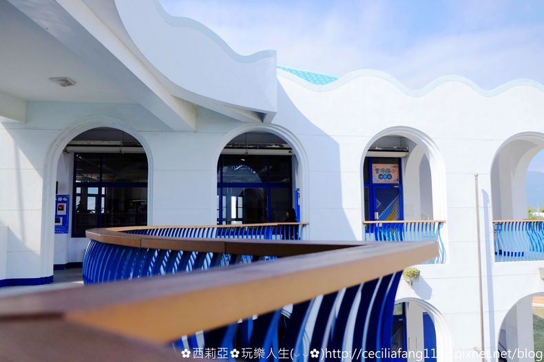 ▼圓拱型的窗戶搭配藍色弧型的欄杆,再加上台東那熱情的太陽,瞬間讓我誤會了...