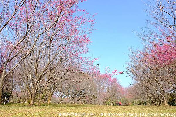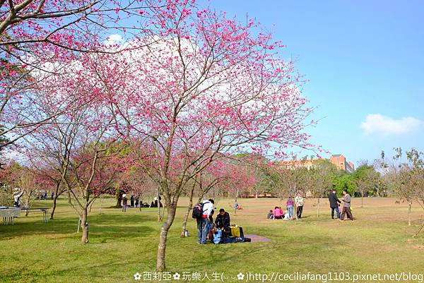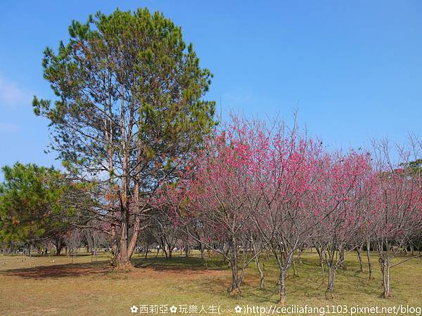 ▼瞧瞧!暨大廣大校園草皮上,一望無際粉紅櫻花樹群,讓我突然望著望著有種錯覺....