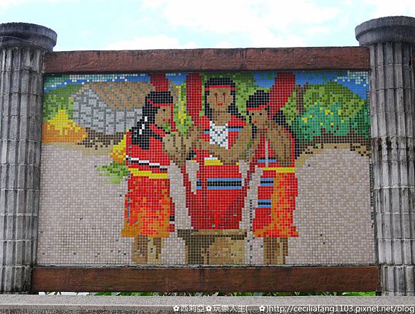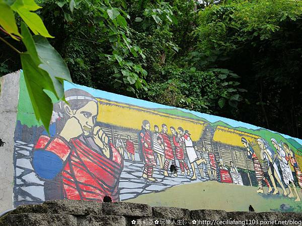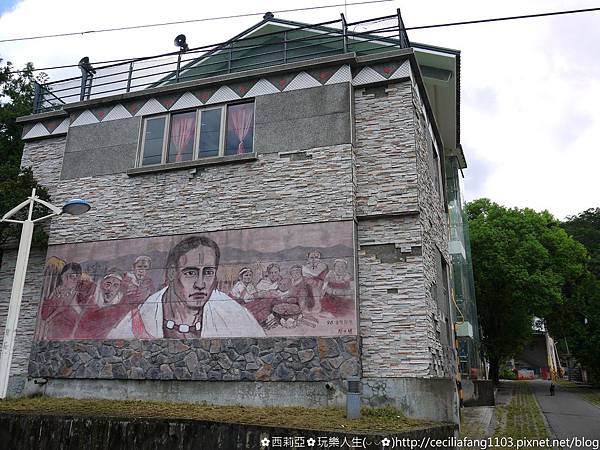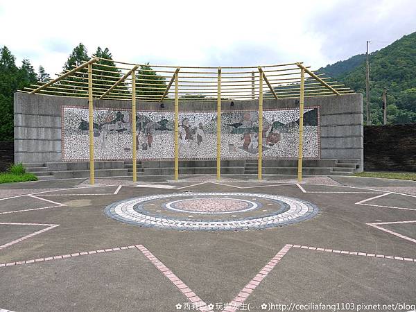 ▼站在三角公園望著牆面圖騰,很難想像這美麗清流部落在80幾年前曾經發生如此難以抹滅的悲慘事件。