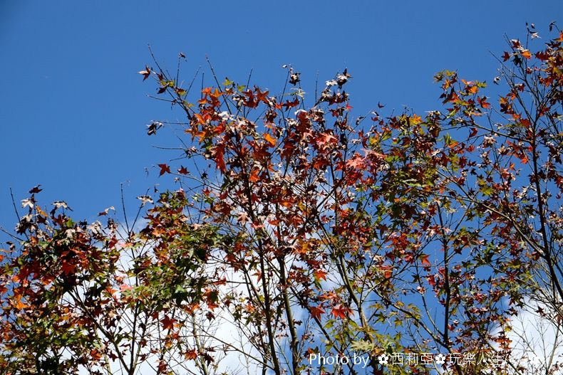 ▼種植在日式宿舍台地上的楓樹,西姐抬頭一望!哇....楓葉已漸漸轉紅,那紅綠色楓葉映著藍天更美麗了。