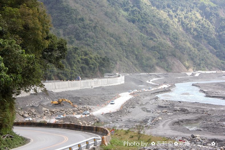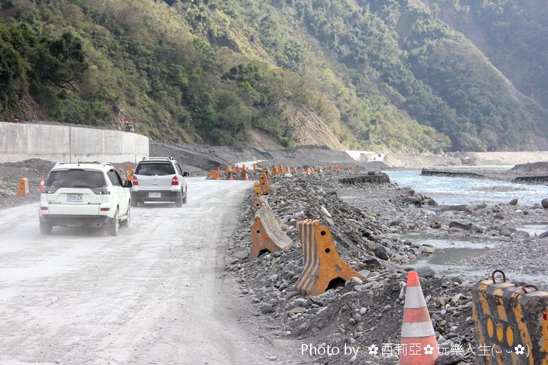 ▼興建於河床的便道長達4.5公里,沿途坑坑洞洞讓開車與坐車的.....我想應該都不太舒服吧!但最辛苦的除了在一旁努力修築道路的工程人員之外,就是隱身在山林之間的原民朋友們....