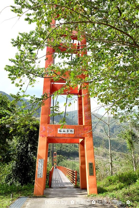 ▼好囉....今天追櫻終點我們來到梅山吊橋,梅山吊橋位於梅山社區入口處,橫跨荖濃溪谷,走過吊橋可抵達對岸的梅蘭林道。