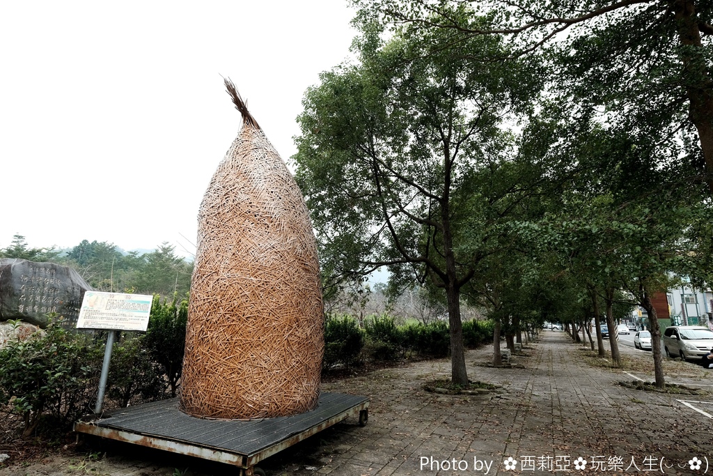 ▼是的!石馬公園也是近幾年南投鹿谷欣賞粉紅河津櫻的最夯景點,而西姐有幸在這個還不算是櫻花盛開時節,發現了幾朵粉櫻提早與旅人見面。 (圖中這一棵裝置藝術是竹筍竹筍竹筍嘿,可不是像我家馬丁說的是.....蠶蛹XDD)