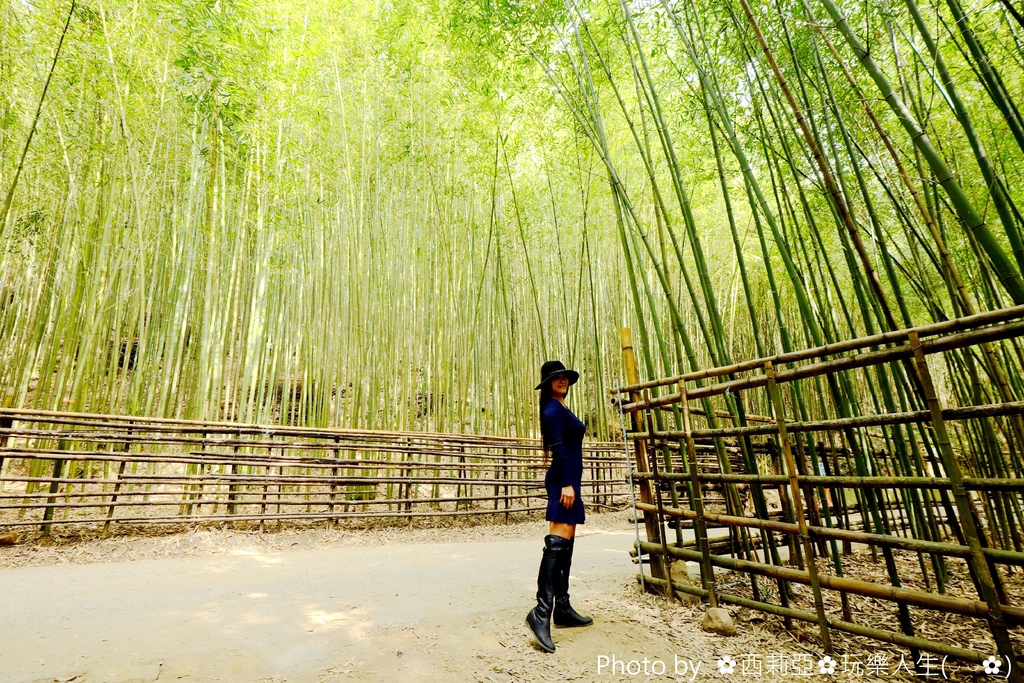 ▼呼~這竹林隧道太有意境了啦,又害西姐忍不住假掰起來,硬要在一旁打卡休息的馬丁也來幾張意境照XD