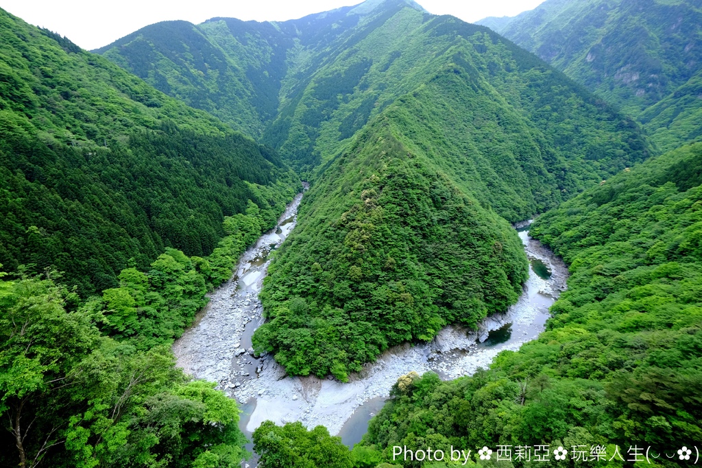 標示出溪谷最險峻的地方,眼前祖谷溪峽谷一片翠綠,這也代表著夏天到來, 這裡可是被米其林綠色指南Japan評為2顆星喔。