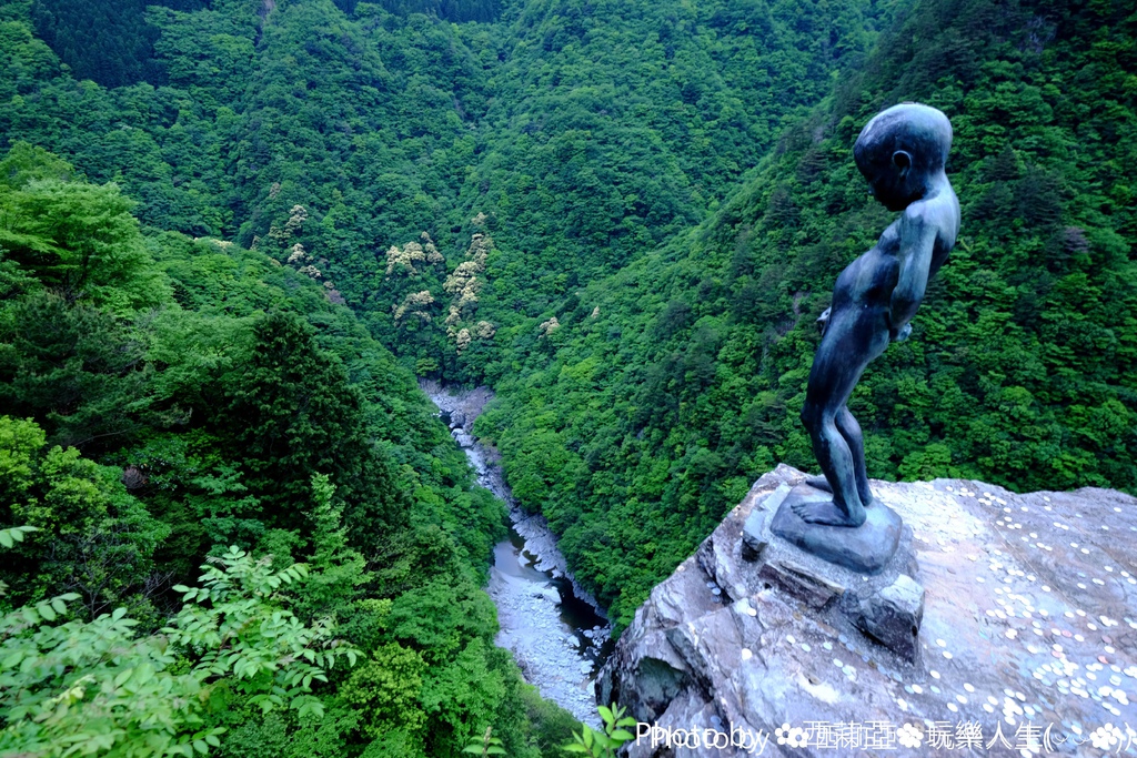 ▼嘖嘖,為了比膽量,古人常站在峽谷一處斷崖,朝200公尺深的祖谷溪尿尿,如今這種行為已被禁止, 但在『小便岩』上立了個尿尿小童,