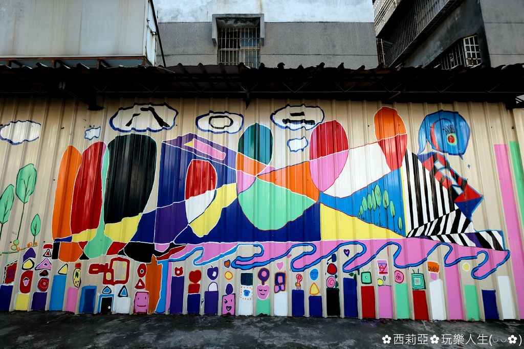 ▼西姐站在對面人行道上望過去~原來,這一幅彩繪作品可是非常豐富呢。