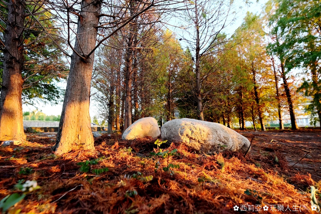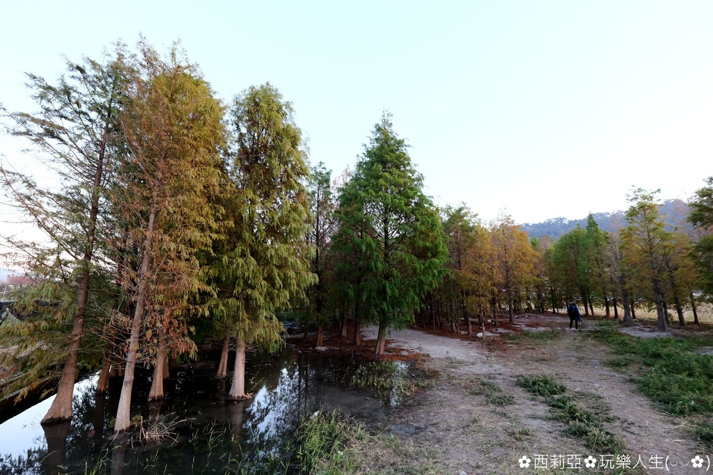 ▼是啊~當天西姐來到這裡也接近黃昏時分,眼前夕陽餘輝,倒也為泰安落羽松增添一些美麗畫面。