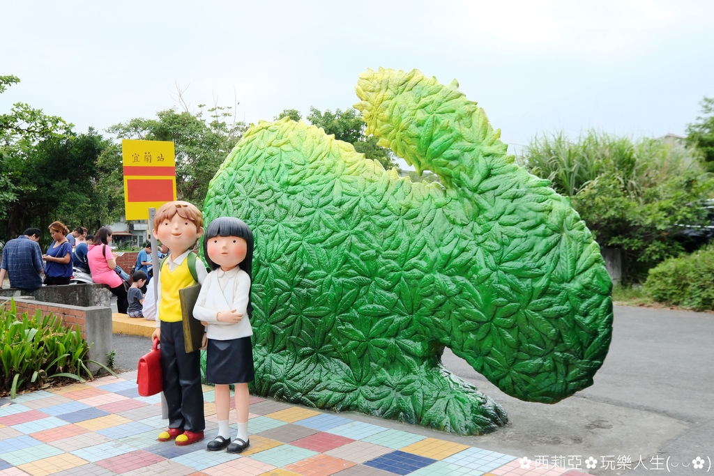 ▼宜蘭火車站前的廣場在幾米裝置藝術妝點下顯得夢幻無比,附近的大景點像是東門夜市、新月廣場、宜蘭酒廠、縣治紀念館.....