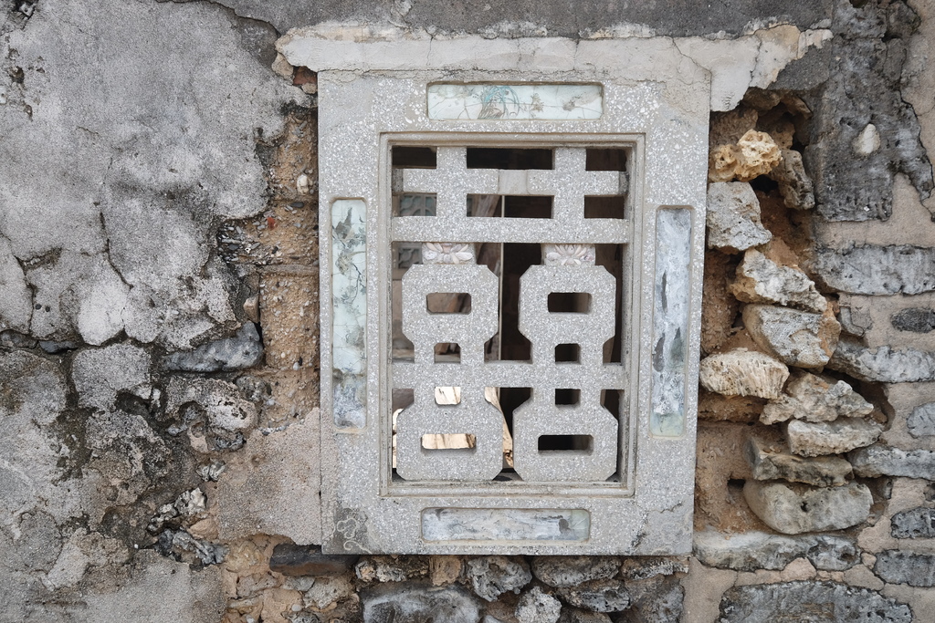 ▼望安花宅古厝的文字窗雕刻著十分討喜的"囍"字,看來....這是攝影者最愛的獵取畫面之一喔。