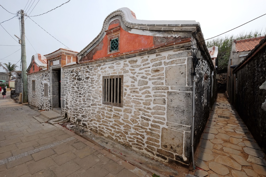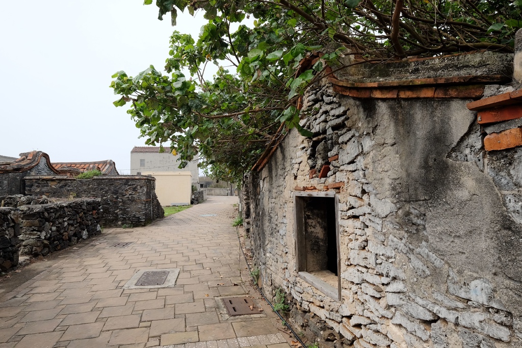 ▼聚落內部空間主要由兩條南北向通道與三條東西向巷道構成,道路具有適合步行之尺度,民居、菜宅等建築均以澎湖的玄武岩和咾咕石砌成,