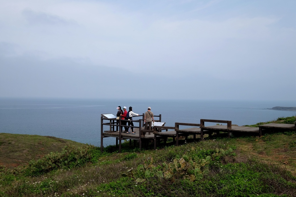 ▼海拔53公尺的天台山岡丘草原帶為望安島之最高峰,附近是澎湖著名文石產地,山四周草原平坦,偶有牛羊漫步,美景自然天成。