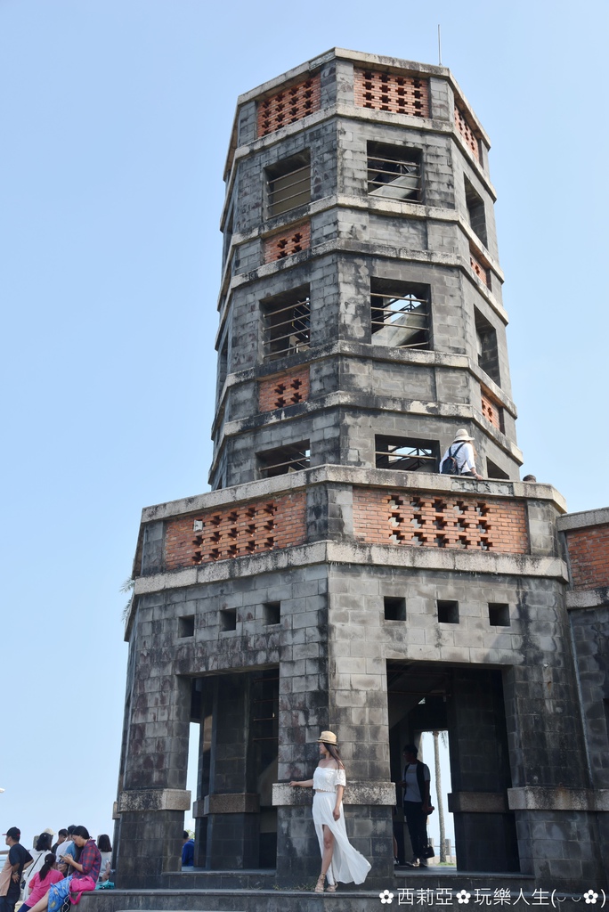 ▼八角瞭望台視野很好,可以邊看海邊吹風,我們沿著八角瞭望台迴旋階梯向上,海風從窗戶吹進來,非常舒爽,這裡可是IG熱門打卡景點喔。(哈哈哈哈,因為機車環島關係,西姐一整個曬黑八度,環島結束上班第一天就被同事笑說也曬太黑了吧XDD)