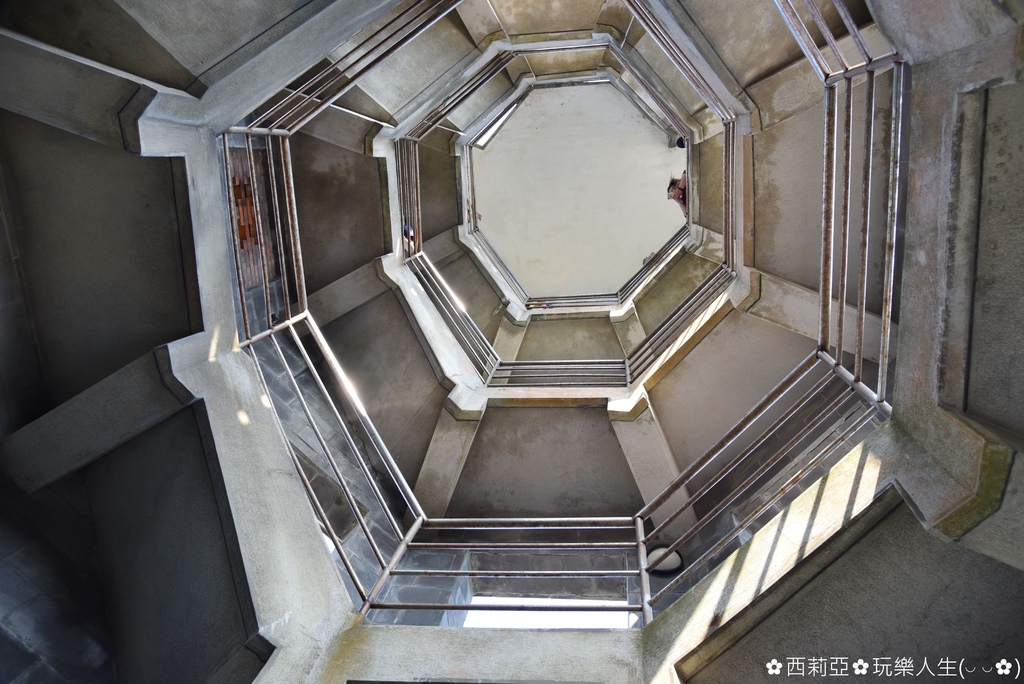 ▼八角瞭望台有好幾層樓的迴旋梯,不論由上往下看或由下往上看,都可以欣賞到獨特內部八角型設計美感,而光線由四面八方窗格照射進來,一瞬間突然覺得整個空間好虛幻,咻~一下誤以為又回到60年代了呢。
