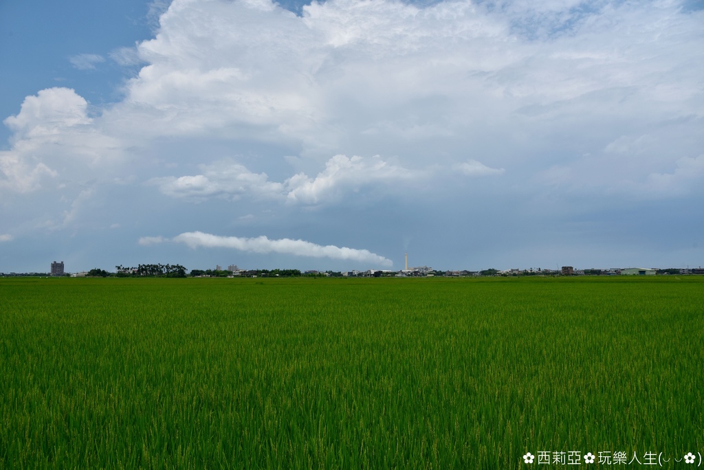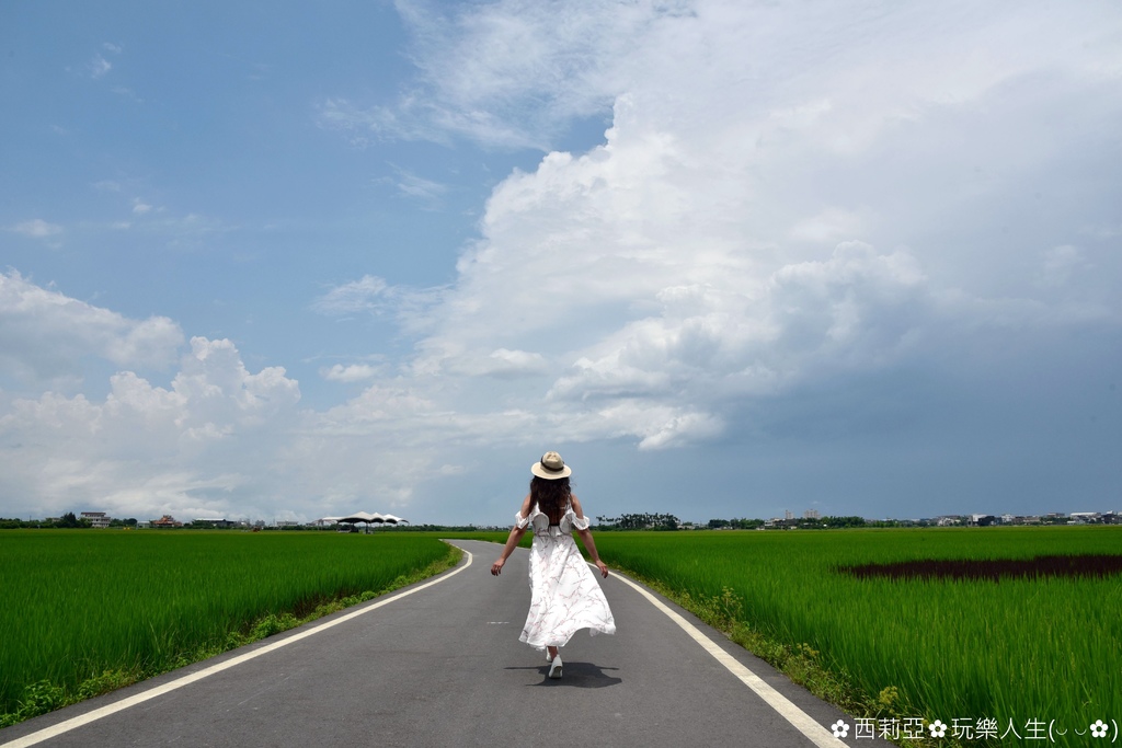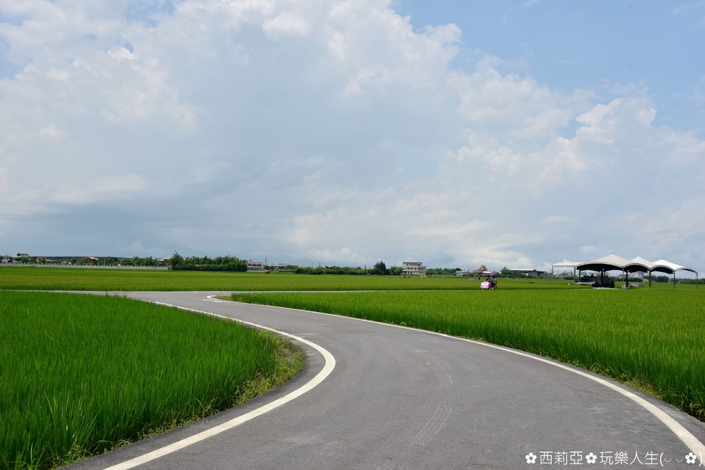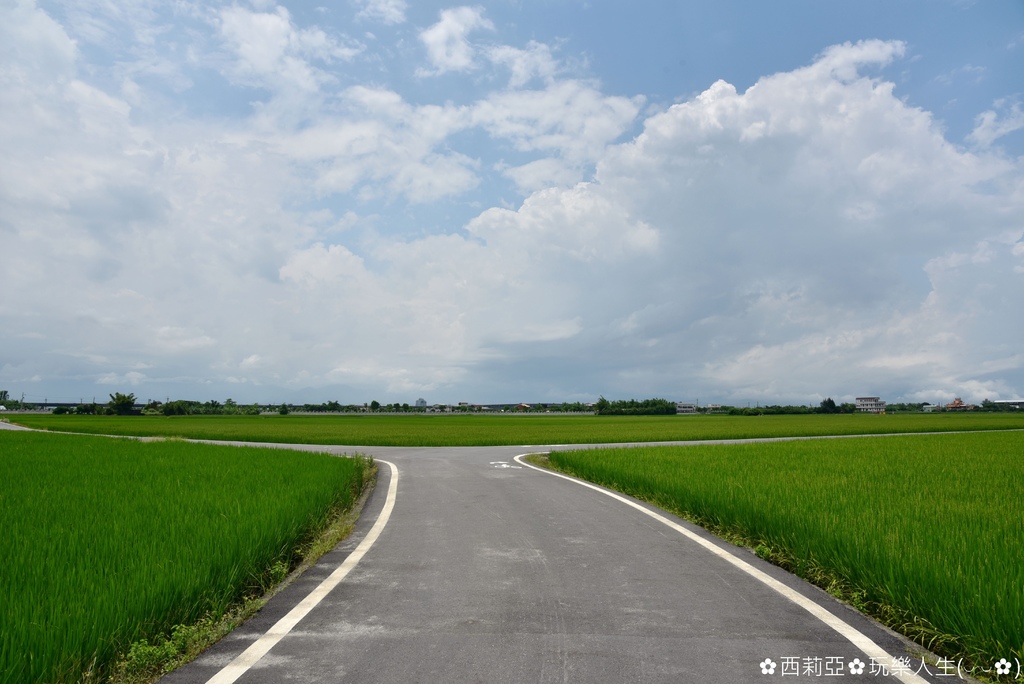 ▼筆直的田間小路完全沒有電線桿,畫面猶如台東池上伯朗大道,因此已經在網路爆紅好一段時間,而西姐也是因此被吸引特地走這麼一趟呢。沿途共有9個S形彎道卻沒有任何電線桿,一望無際的稻田景緻更顯得寬闊。
