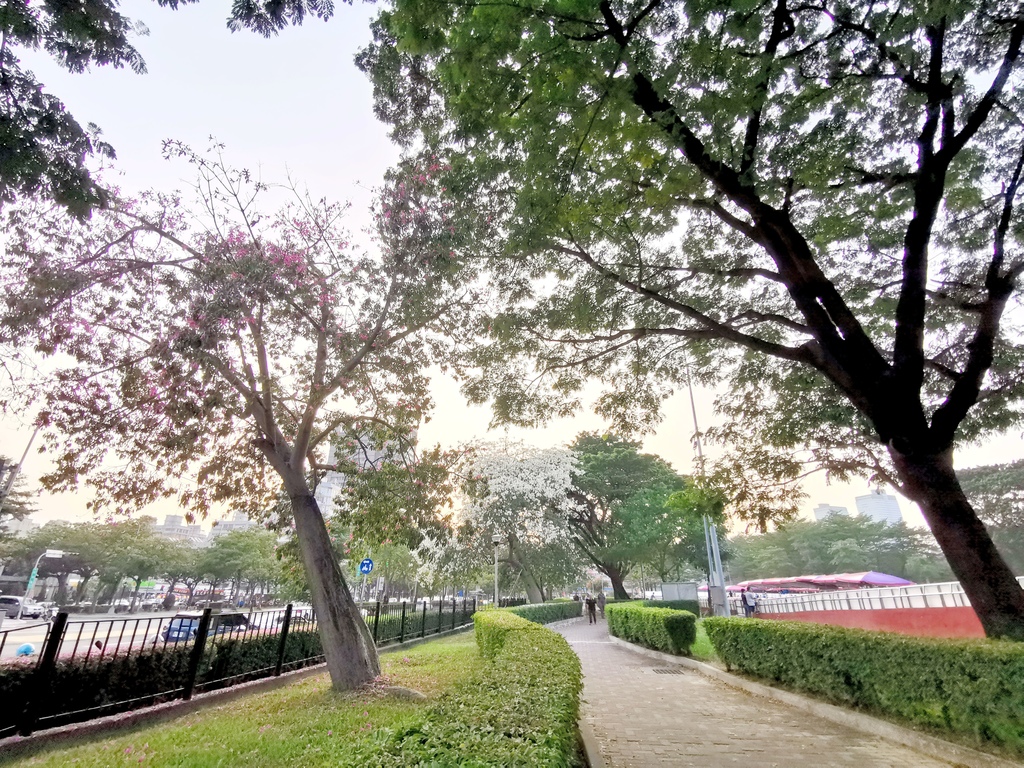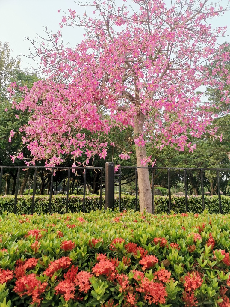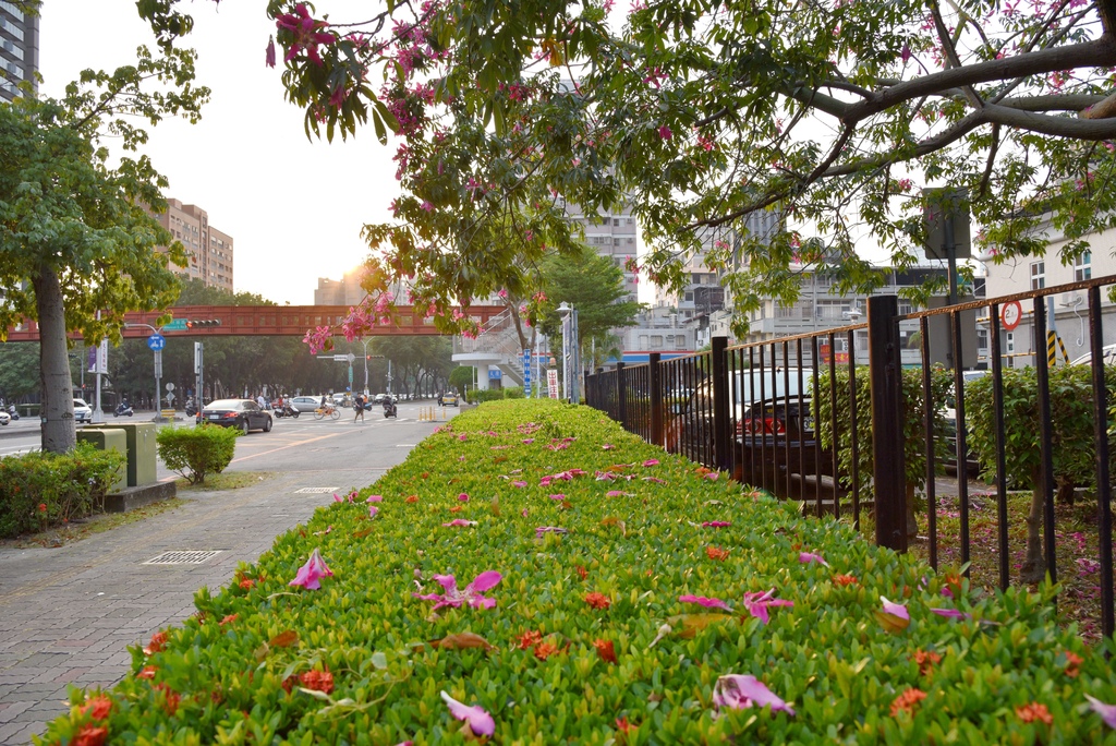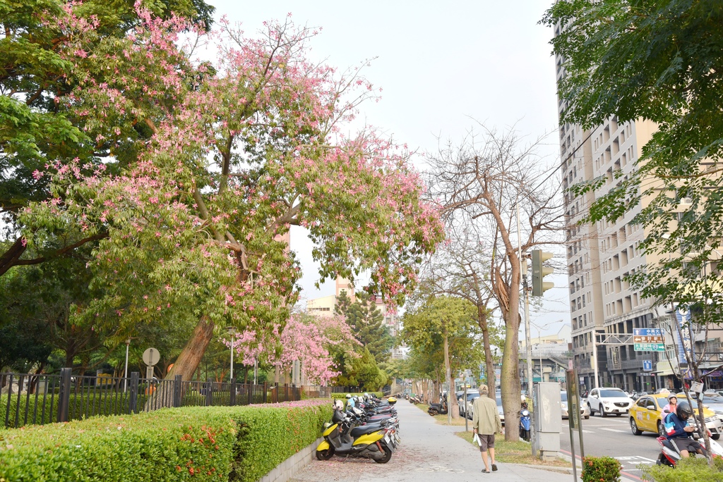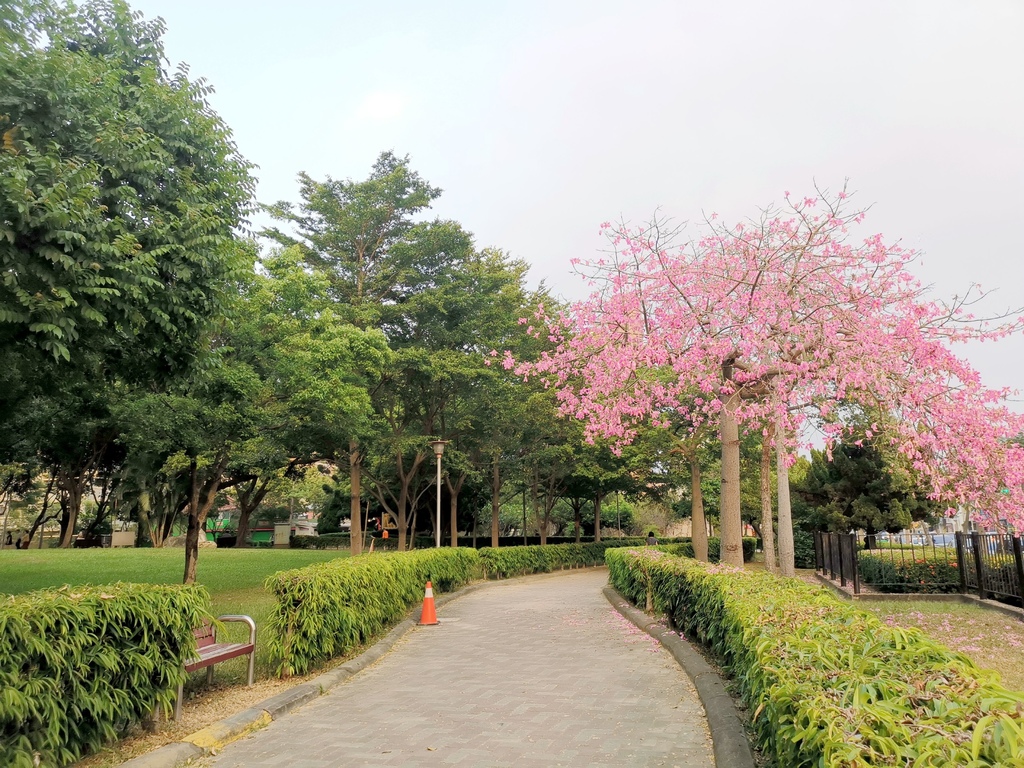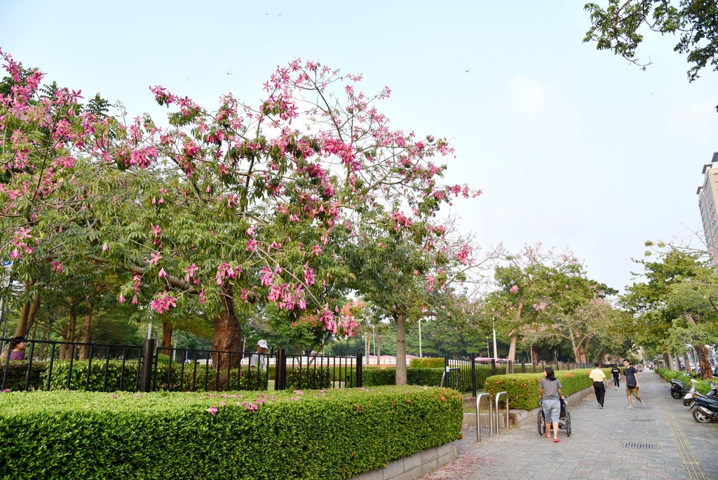 ▼是啊,假日午後我們來到位於南區的台中健康公園,才剛下車就被眼前這粉紅浪漫驚豔了,當然也包括走在人行道上的大家..總是會情不自禁地抬頭欣賞美好畫面。
