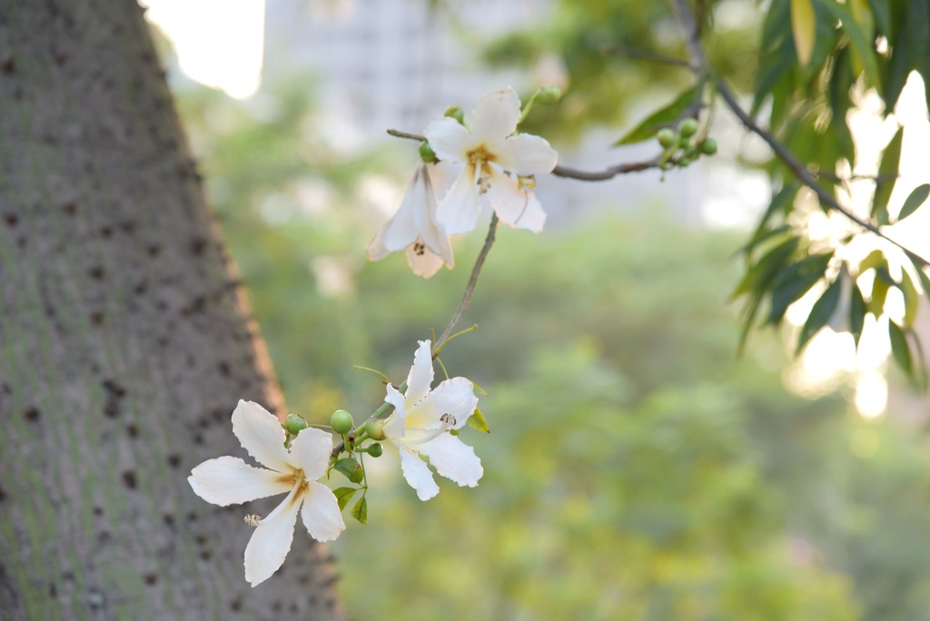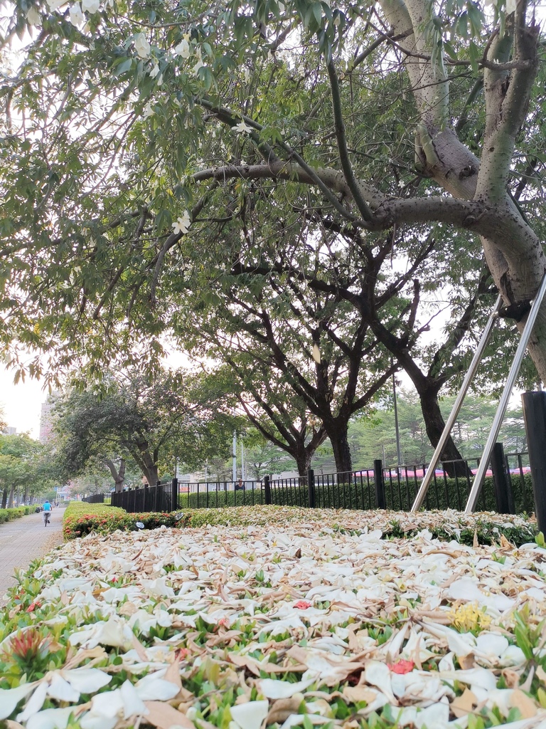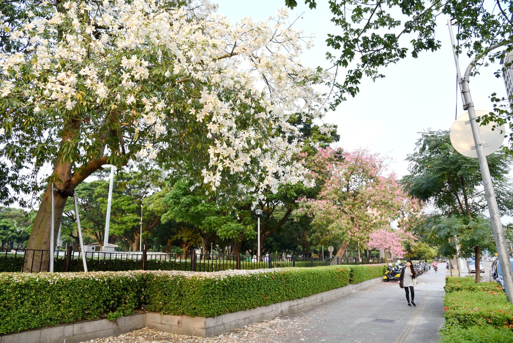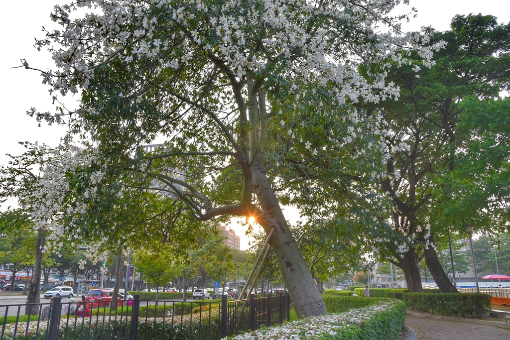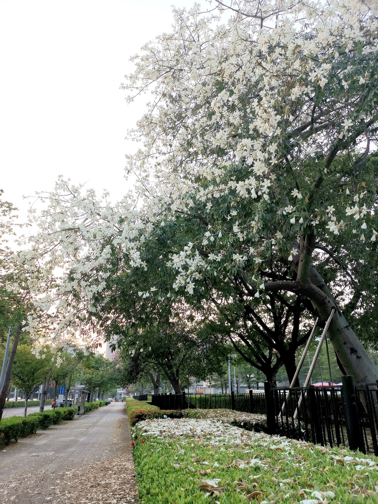 ▼美人樹白色花朵佈滿天際....啊.....專屬於這個季節的畫面真美啊.....