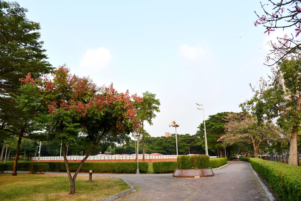 它位於南區五權南路與忠明南路口,佔地約5.67公頃,植物種類繁多,有木棉、黃椰子、美人樹、胭脂樹、火焰樹、黑板樹及黃金扁柏等等,好囉,大家看文字要看重點啊....剛剛前面提到健康公園植物樹種極多,秋季時分我們要來到公園欣賞甚麼美麗景色呢?