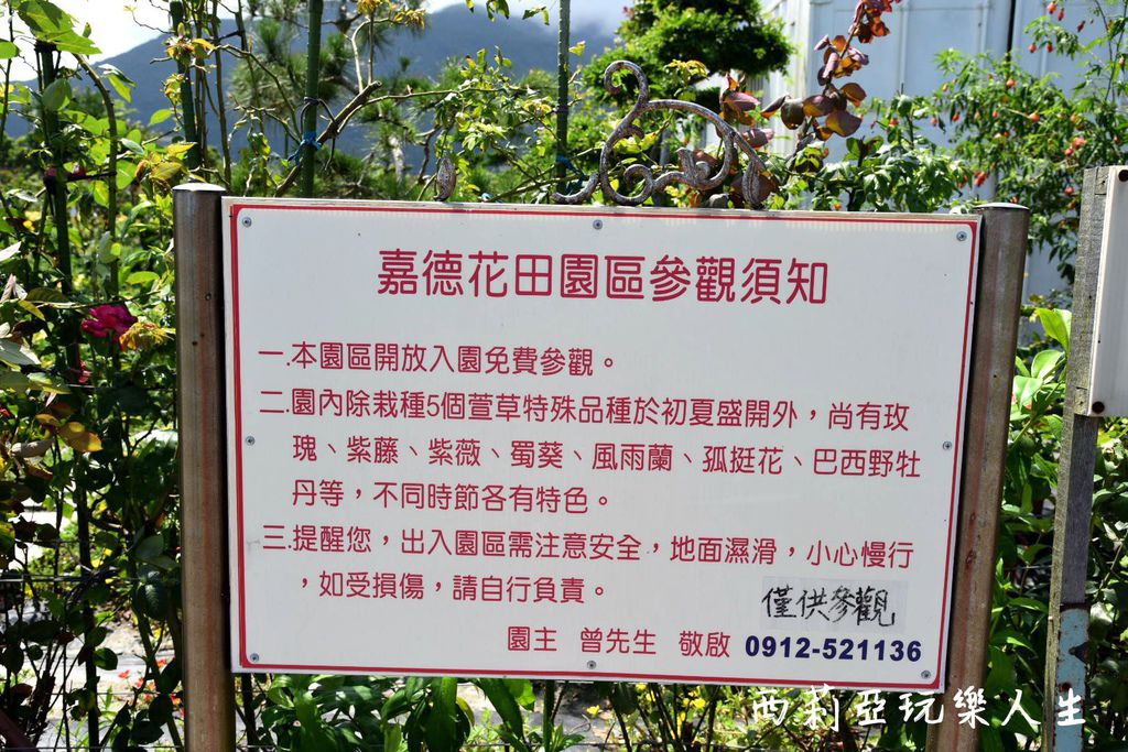 ▼嘉德萱草花田到處都可以看見說明牌,說明著歡迎大家賞花,但花朵剪修工作請由園丁做,千萬別自己亂摘花木,當了一位討厭的採花賊嘿....