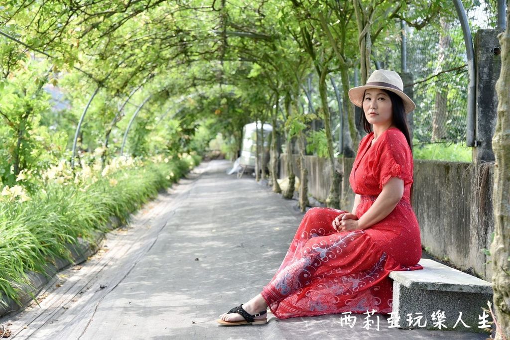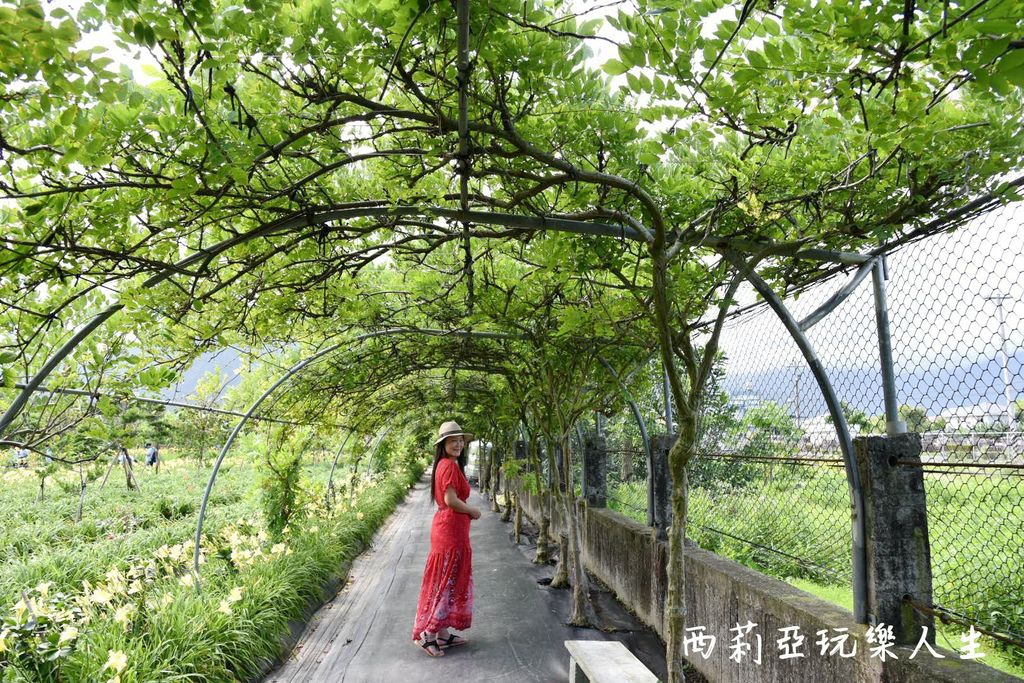 ▼嘉德萱草花田園區旁邊還有一座好漂亮的綠蔭隧道,我們站在隧道底下感受著陣陣涼風,一整個就是好消暑啊.....