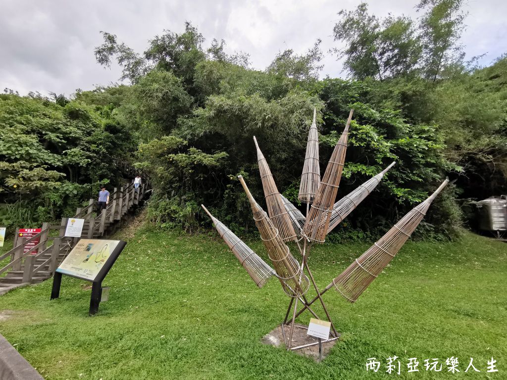 ▼大石鼻山步道入口處還有幾座相當有特色的裝置藝術,看著一些遊客拍著留影,西莉亞看著看著也挺開心的說....