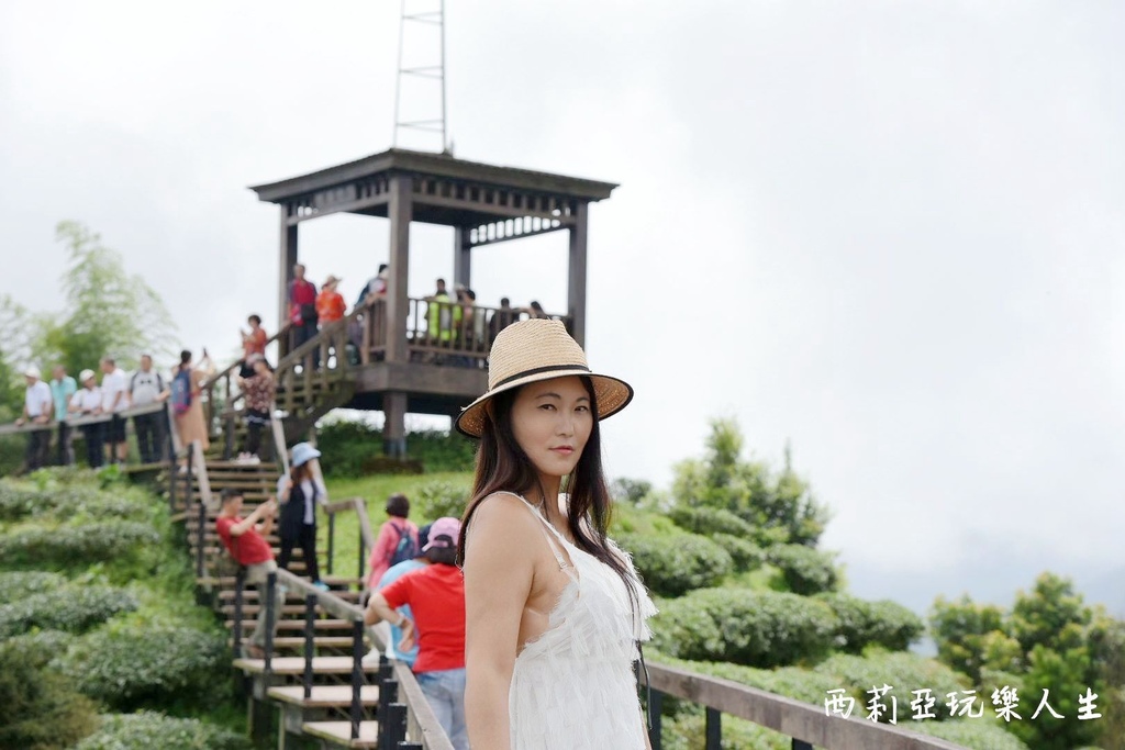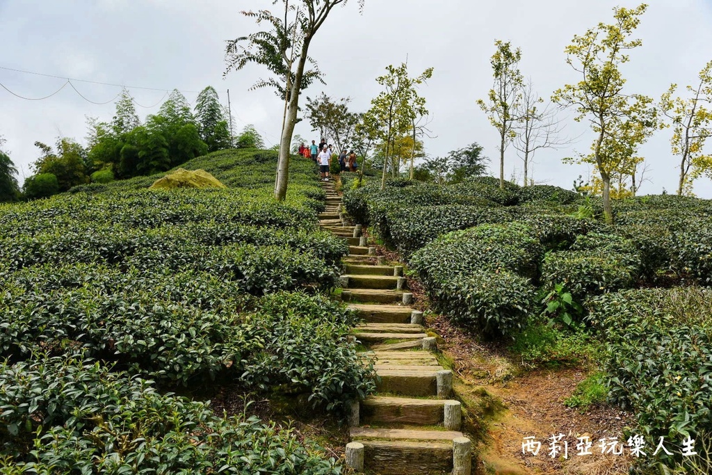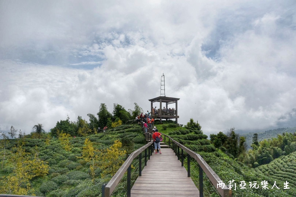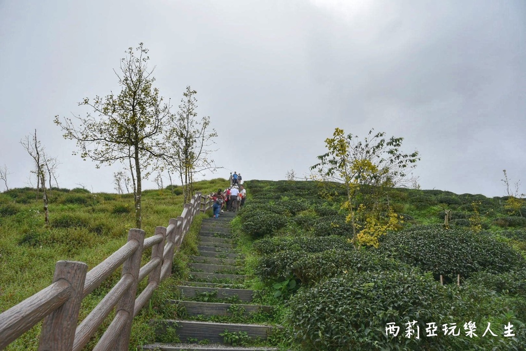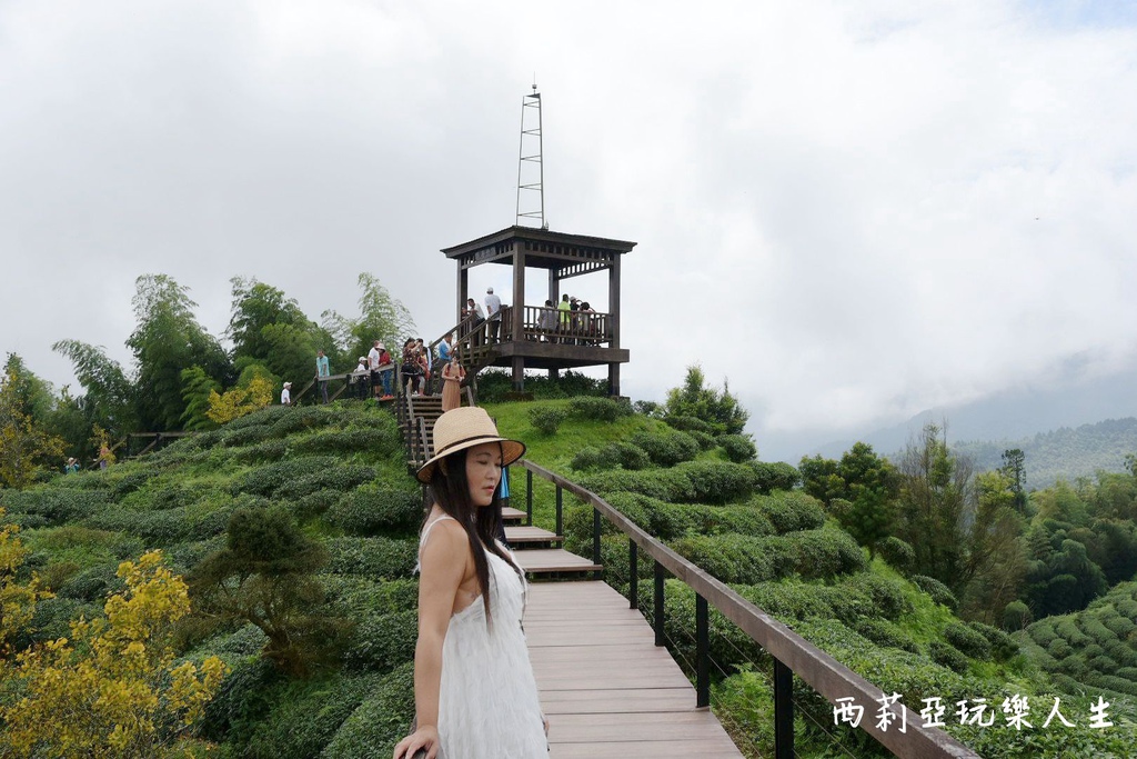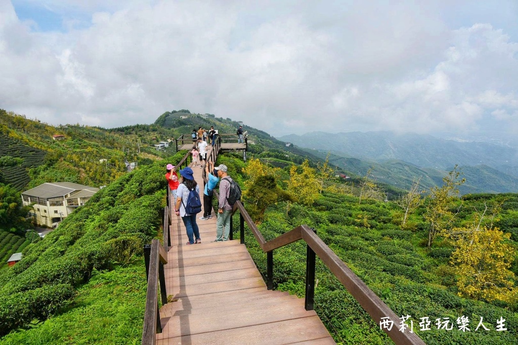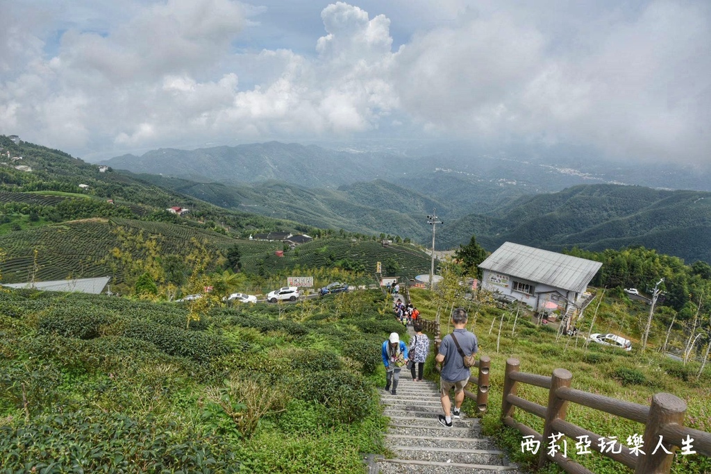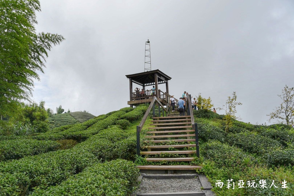 ▼好囉,接著我們準備前往大崙山觀景台,那裡可也是每一位朋友來到這兒一定要前往的景點之一。其實大崙山觀光茶園觀景台往上階梯不難攀登,因為沿路都有完善設置的木棧道,但請大家慢慢行走,約莫10來分鐘即可抵達喔。