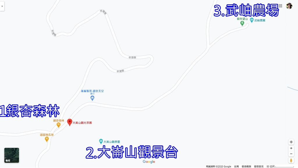 ▼噓.....偷偷說一下蠢事....西莉亞還沒去這一趟之前,總是銀杏森林、大崙山觀光茶園(觀景台)、武岫農圃傻傻分不清楚,啊....那究竟銀杏林是在哪裡啦??終於認真走這麼一趟給它解惑,原來以上這些都在同一區域啦,只是分散不同位置罷了!可以參考西莉亞特製Google Map。