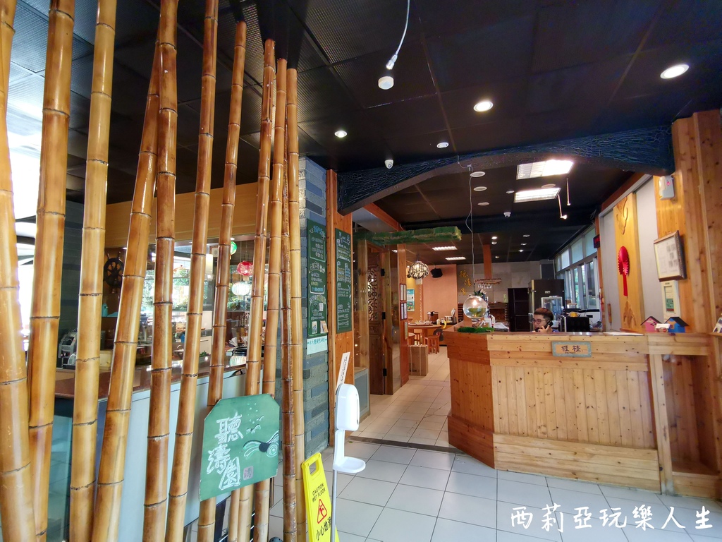 ▼西莉亞好喜歡聽濤園櫃台擺設,非常有鹿谷鄉其中特色,除了整體格局頗有簡約質樸特色之外,還有就是以竹製品來裝飾入口處。