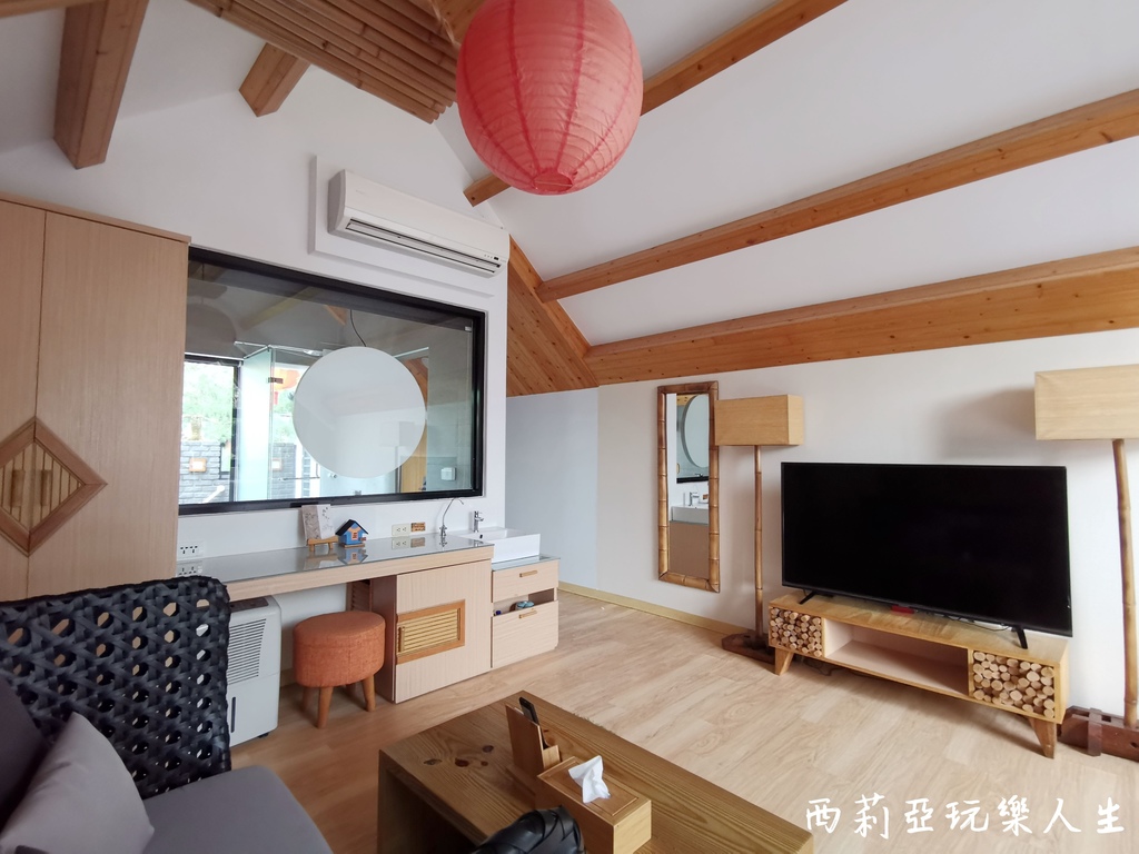 ▼邊城四人房房間坪數約13坪,整體來說房間面積非常寬敞,格局也十分方正,大家可有注意到電視櫃?原木造型電視櫃非常有設計感,西莉亞非常喜歡耶^^