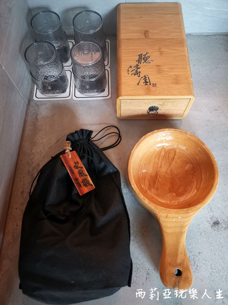 ▼西莉亞超級喜歡右上角的原木盒,大家猜看看裡面放甚麼啊?其實裡面放著所有衛浴備品,西莉亞當下一打開,就輕輕地笑了出來^^還有下方吹風機字樣及木勺子更是別具巧思呢。