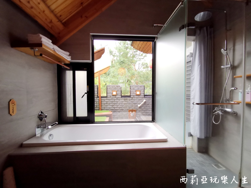 ▼邊城四人房浴室總共分為室內浴缸、淋浴設備及室外浴池,西莉亞看著看著一整個心花怒放,想不到這邊城房型居然有這麼多花樣啊XD