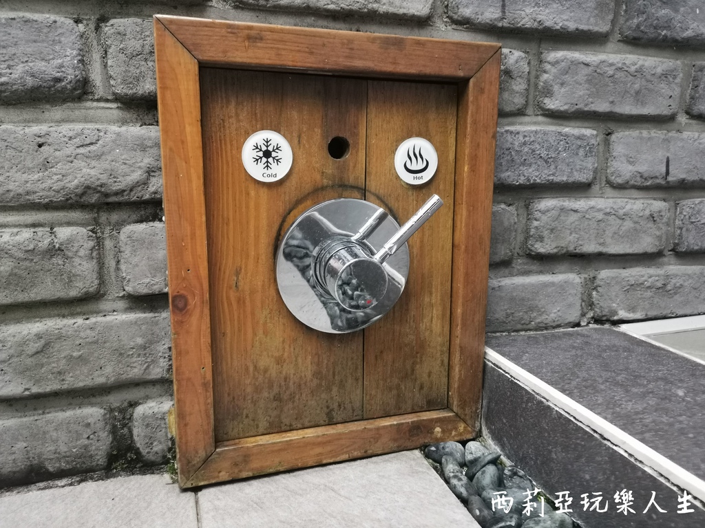 ▼戶外浴池冷、熱水標示非常清楚,使用上也非常簡單,想要冷水或熱水,就請自己來控制吧!
