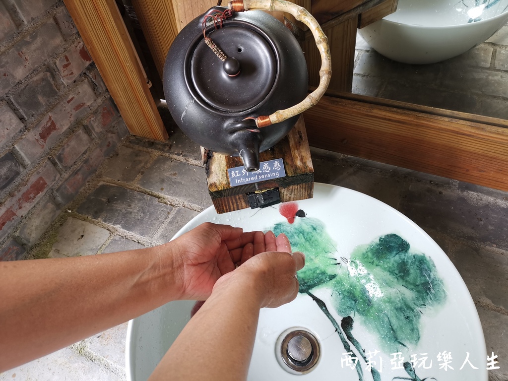 ▼還有還有洗手間外面的洗手台,水龍頭造型居然是茶壺耶,重點還是使用紅外線感應喔。就連洗手檯都有著中國水墨畫圖案,是不是超有心的啊^^