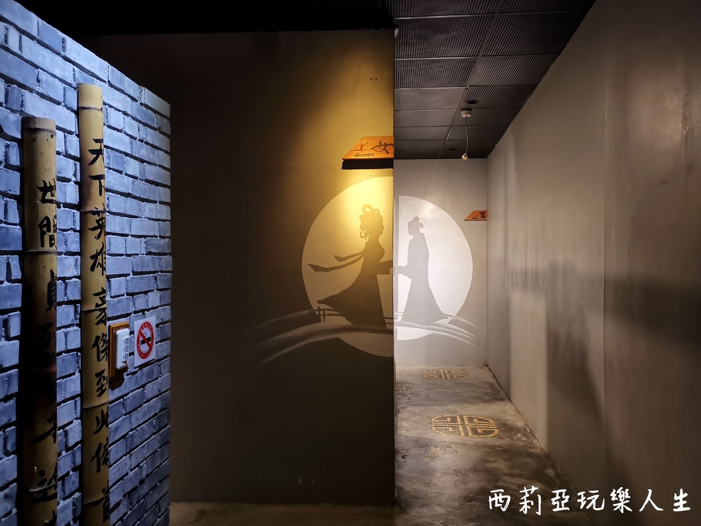 ▼啊....這也是西莉亞驚艷的一點,大家猜猜這裡是哪裡啊?!其實應該有朋友已經猜到了喔,這裡是聽濤園餐廳後方的洗手間,哈哈哈哈,西莉亞用完洗手間之後,轉頭一看!居然遇見牛郎織女?!一整個好欣賞聽濤園居然連洗手間都可以這麼有創意,超級有意思的說....