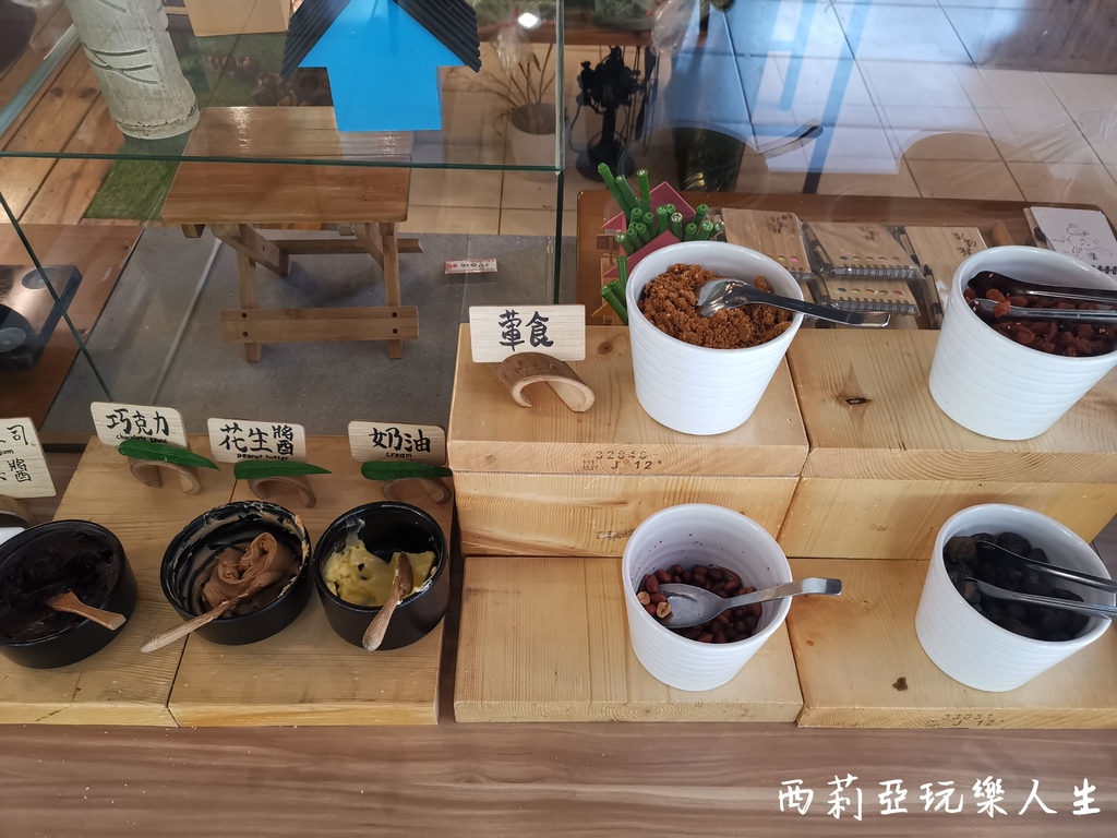 ▼圖中左邊是吐司塗醬,右邊則是中式稀飯可以享用的小菜類。