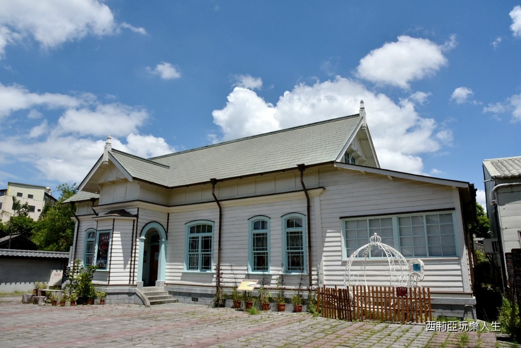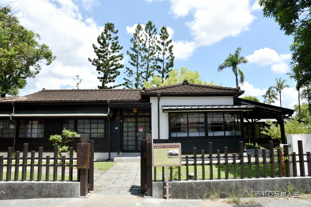 ▼圖中這一棟建築就是所長官舍,日治時期為營林所嘉義出張所的所長宿舍,屋瓦採用水泥石片及台灣紅瓦讓這棟建築顯得格外優雅。藉由舉辦藝文展覽,讓更多人欣賞它的建築之美,據導覽老師分享,因為台灣四面環海氣候較為潮濕,所以當時日本人建造日式建築,地基刻意挑高,挑高部分除了有防潮作用之外,還可以飼養家禽或冬天放置五穀雜糧,充當倉庫使用。