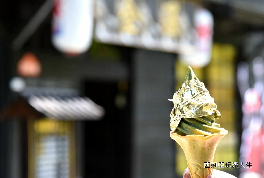 ▼金沢茶屋使用日本丸久小山園本製菓專用最高等級由石臼研磨出來的抹茶若竹, 搭配來自金澤市食用等級金箔,挑動您的視覺與味蕾。雖然金箔霜淇淋價格稍微偏高,但大家要知道在不能出國的狀態之下,姐吃的不是金箔抹茶霜淇淋,而是滿滿的日本回憶啊....