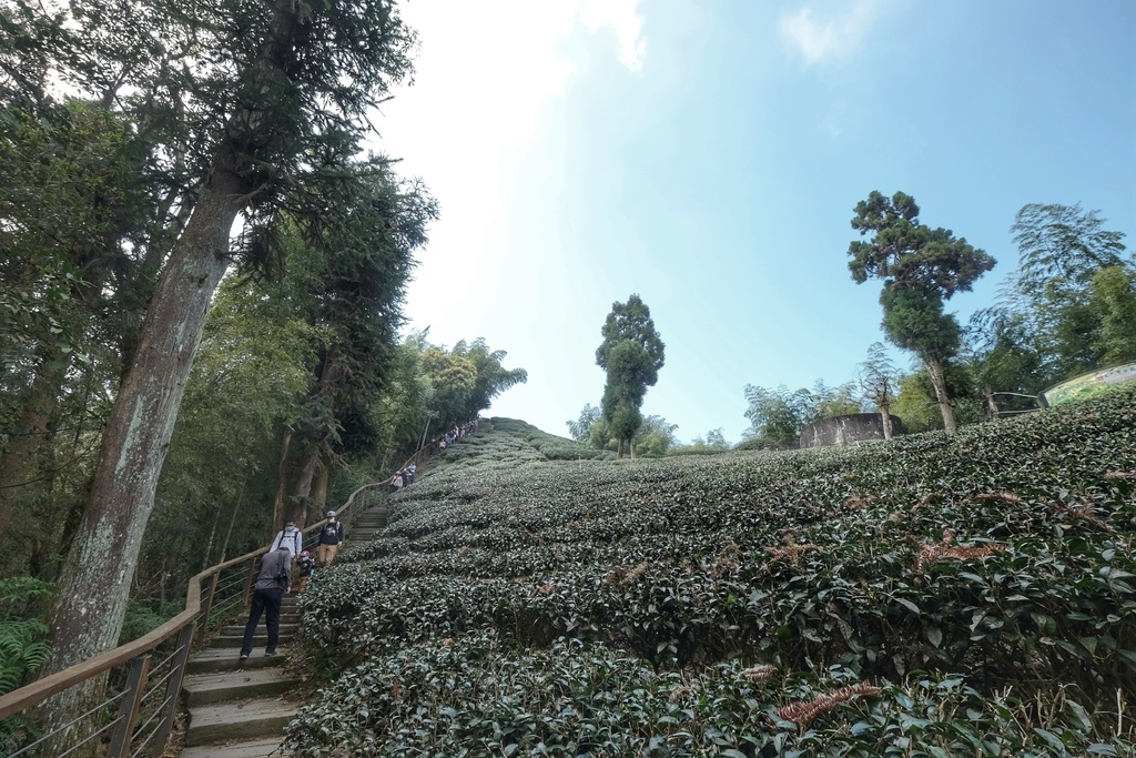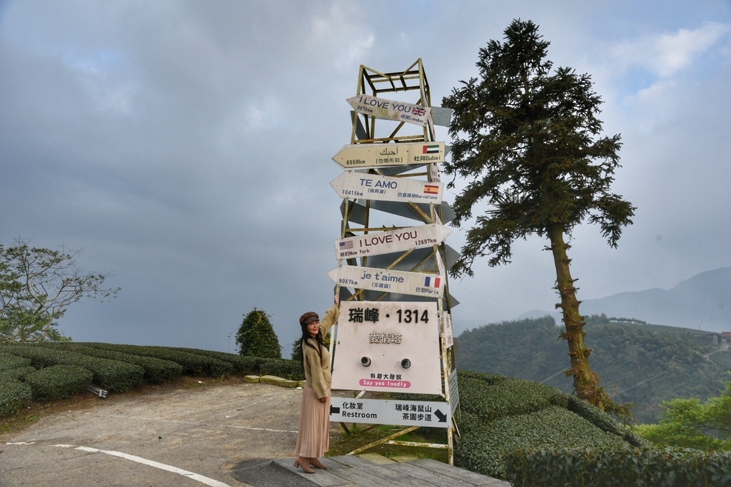 至於最高點的觀日峰,海拔高1311公尺,據說天氣晴朗時,夜晚還能從觀日峰欣賞到嘉義市區夜景;而興建於茶園中的觀景台本身高度為3公尺,相加起來剛好為1314公尺,於是便命名為1314觀景台,象徵著一生一世的愛情,怎麼可以這麼浪漫啦!齁....