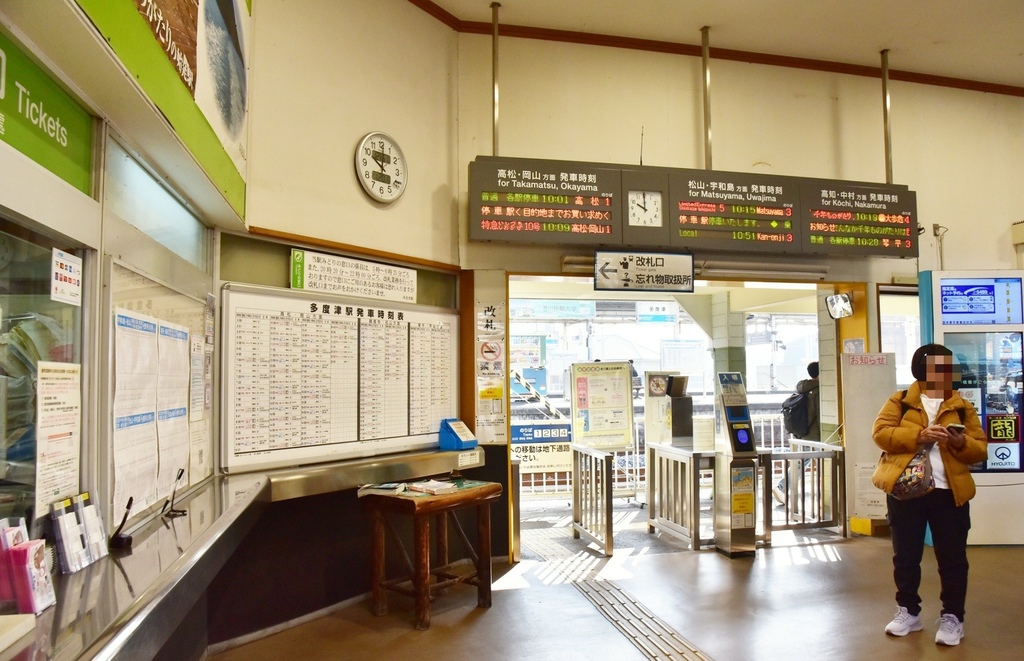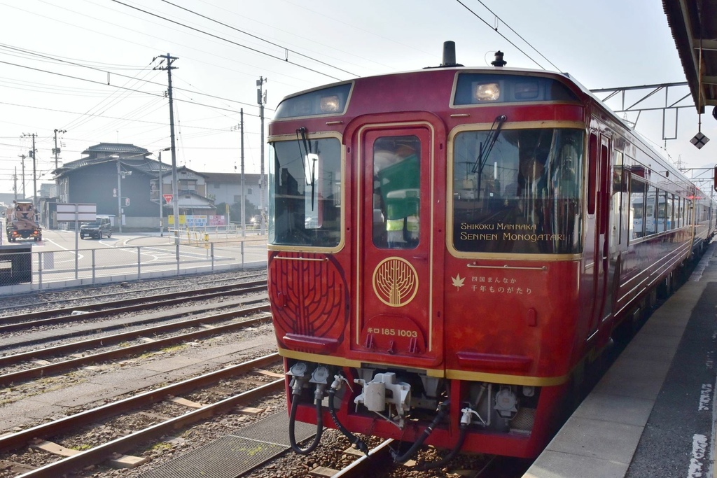 ▼話說第二天起個大早,我們離開高松JR Clement Hotel,驅車前往車程約莫四十分鐘的多度津駅,此站隸屬於四國旅客鐵道(JR四國)的鐵路車站。2017年開辦的土讚線觀光列車「千年物語」即以多度津駅為起訖站。我們即將從這裡搭乘列車,沿途停靠琴平駅、坪尻駅、阿波池田駅,最後停靠於德島縣大步危駅。