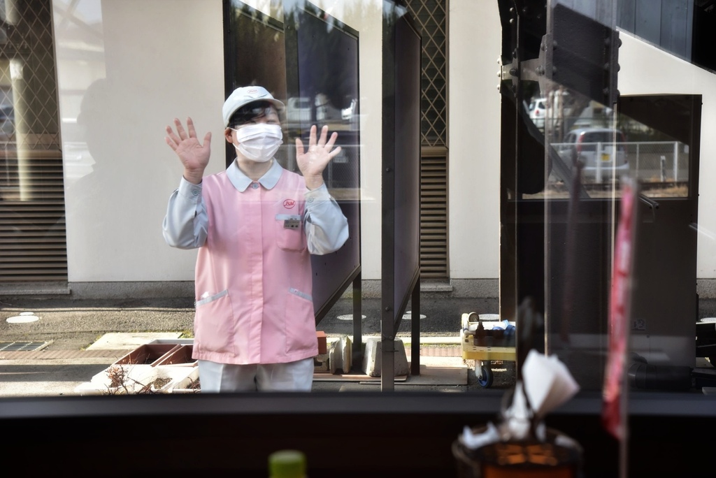 ▼就在離開阿波池田駅之際,站務人員依舊熱情地拿著應援扇賣力揮舞著..拜拜~拜拜~蔦監督~(拼命揮手)